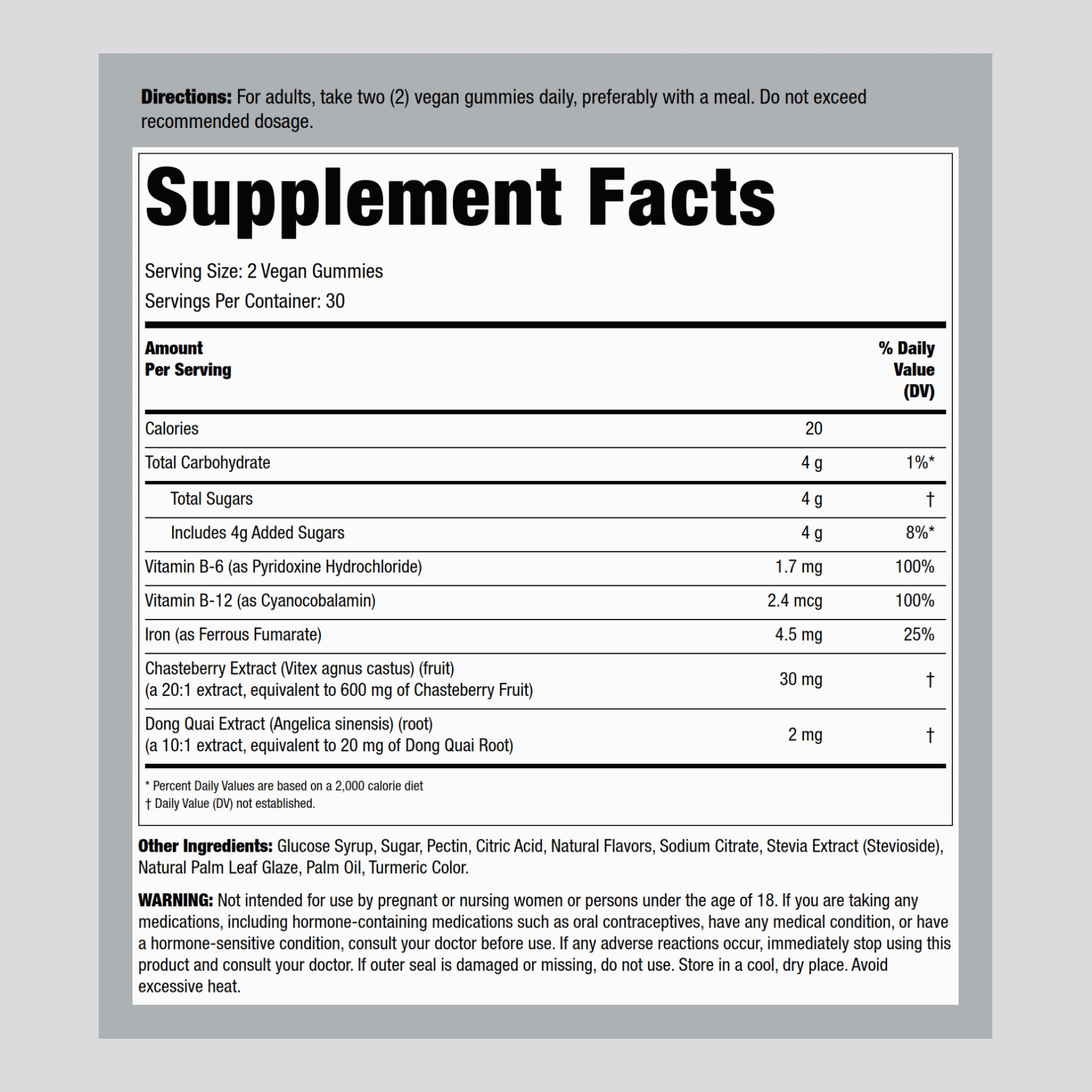 recommended dose is 2 vegan gummies per day.